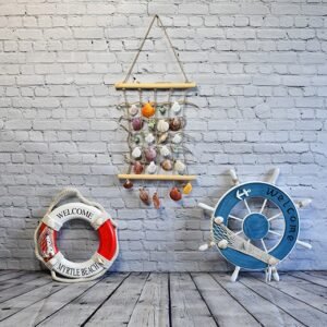 Väggdekoration med 3 marin livboj – vintage inredning