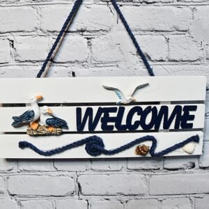 Vägg inredning entre med marin, välkommen skylt – köpa inredning online