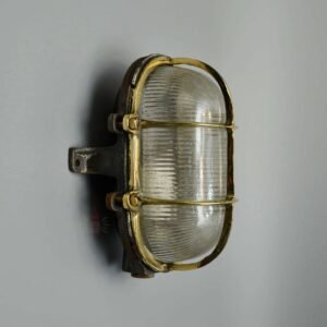 Authentic Vintage Iron Brass Cage Bulkhead Light – Angled Nautical Salvage