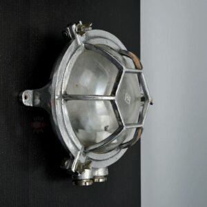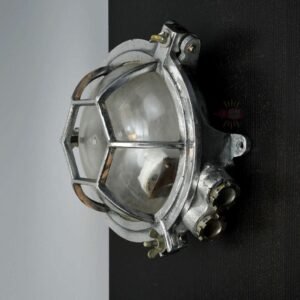 Authentic Vintage Aluminium Bulkhead Light – Salvaged Ship Dome Wall Sconce