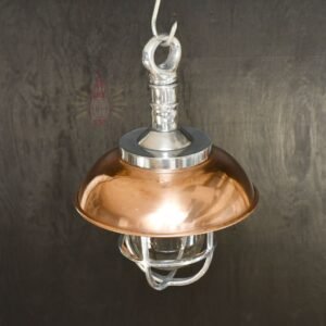 Authentic Vintage Aluminium Nautical Pendant Light with Copper Shade