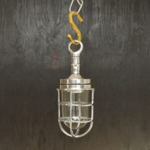Authentic Vintage Aluminium Caged Pendant Light – Nautical Hanging Salvage
