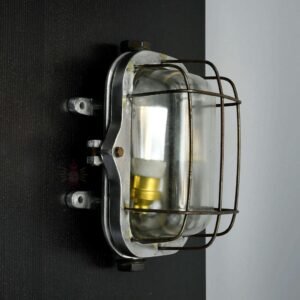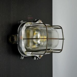 Authentic Vintage Aluminium Nautical Wall Light with Brass Cage