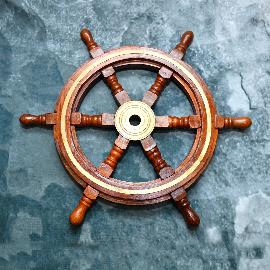 Båtratt i trä och mässing, 46 cm Dia – inredning marin stil