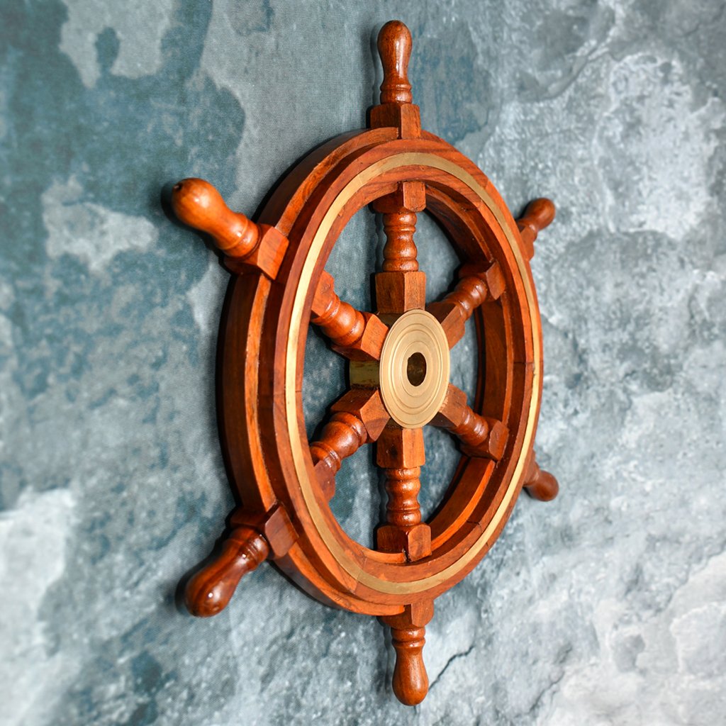 Båtratt i trä och mässing, 30 cm Dia – inredning marin stil
