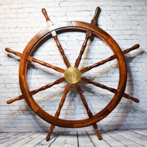 Båtratt i trä och mässing, 30 cm Dia – inredning marin stil
