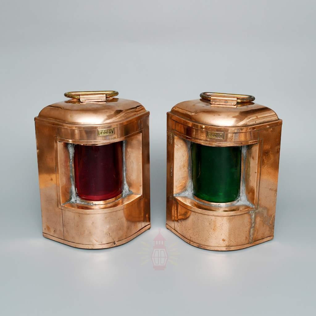 Authentic Polished Copper Port and Starboard Lanterns Pair – Vintage Nautical Oil Lamps