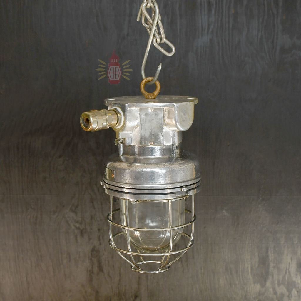 Authentic Vintage Aluminium Caged Pendant Light – Nautical Hanging Salvage