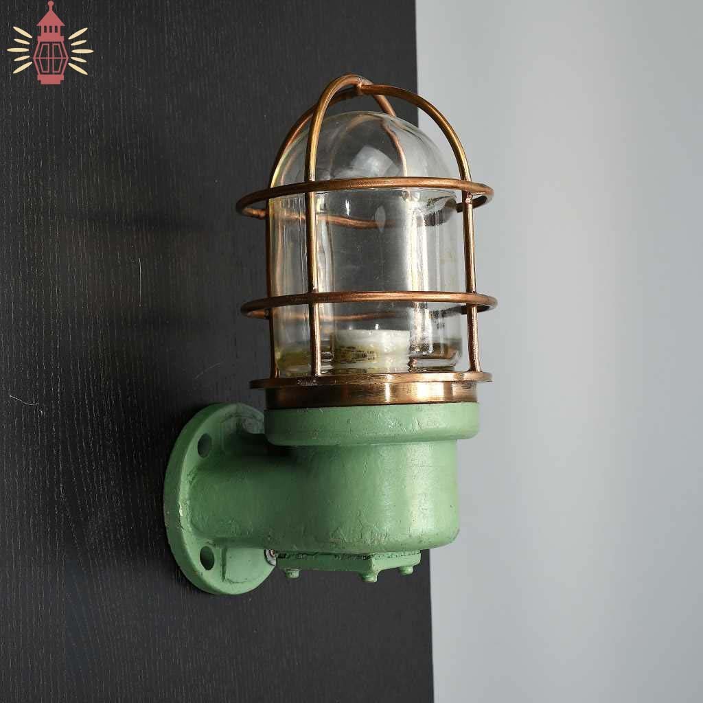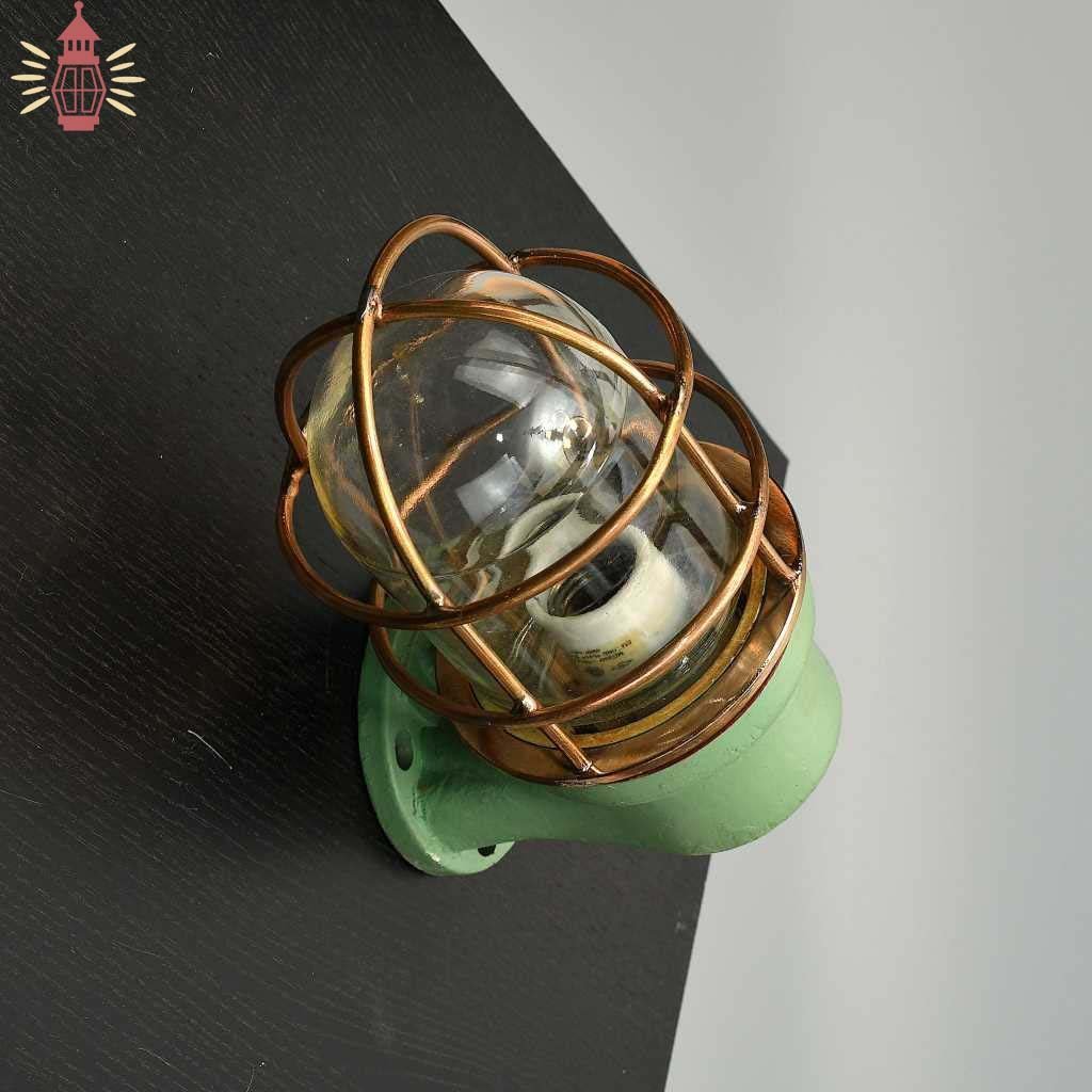 Authentic Fibre Bulkhead Light with Brass Cage – Vintage Nautical Salvage
