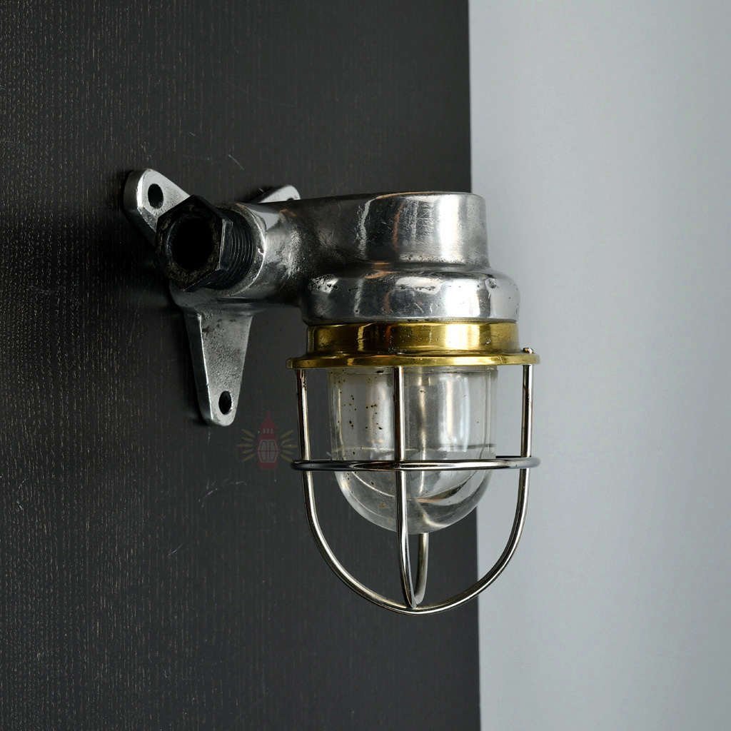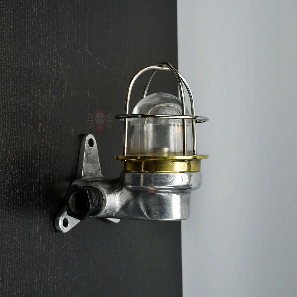 Authentic Vintage Aluminium Nautical Wall Light with Brass Cage