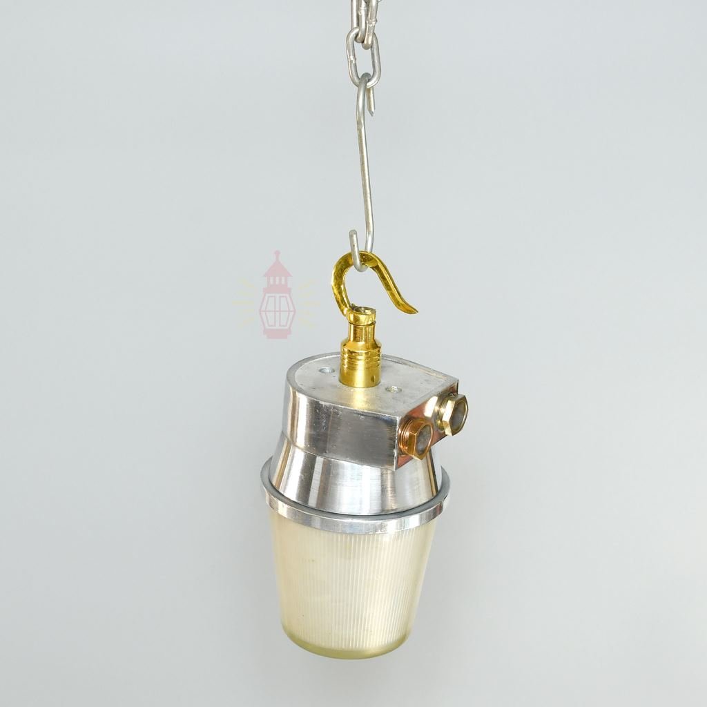 Authentic Vintage Polished Aluminium Nautical Pendant Light with Brass Hook