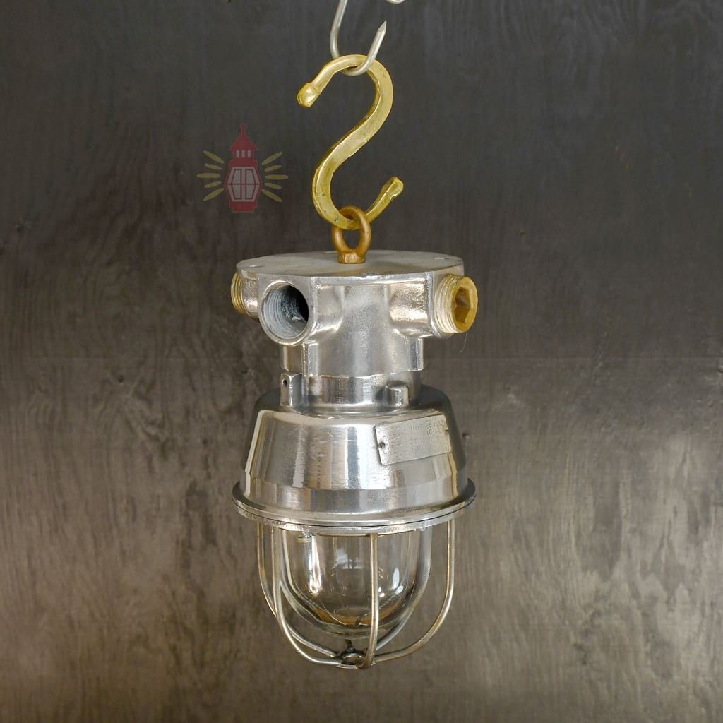 Authentic Vintage Stainless Steel Cargo Pendant Light – Polished Nautical Hanging