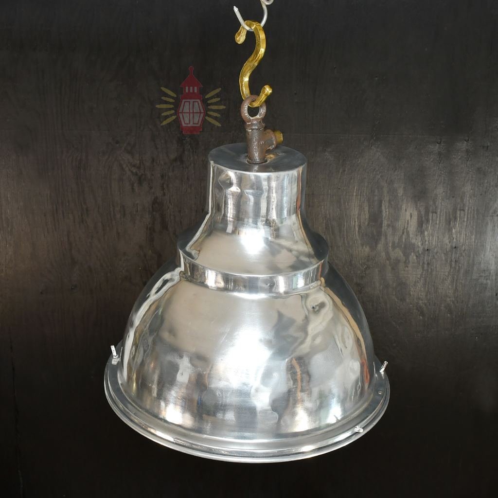 Authentic Polished Aluminium Pendant Light – Large Nautical Hanging Salvage