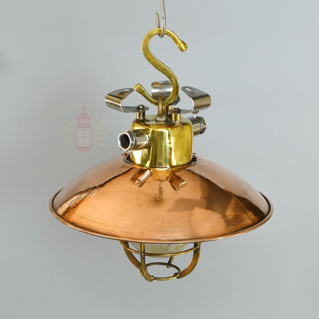 Authentic Brass Cargo Light with Copper Shade – Vintage 3-Angle Nautical