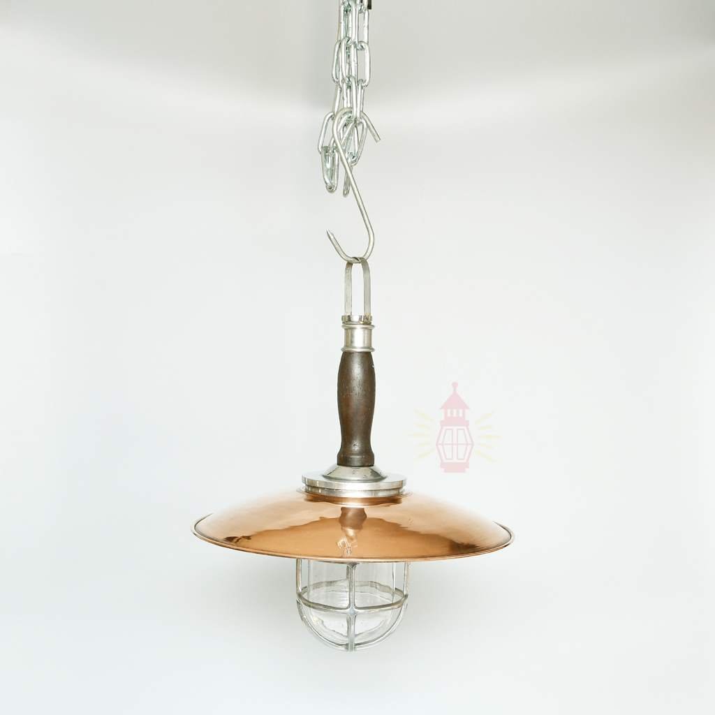 Authentic Vintage Aluminium Nautical Pendant Light with Copper Shade