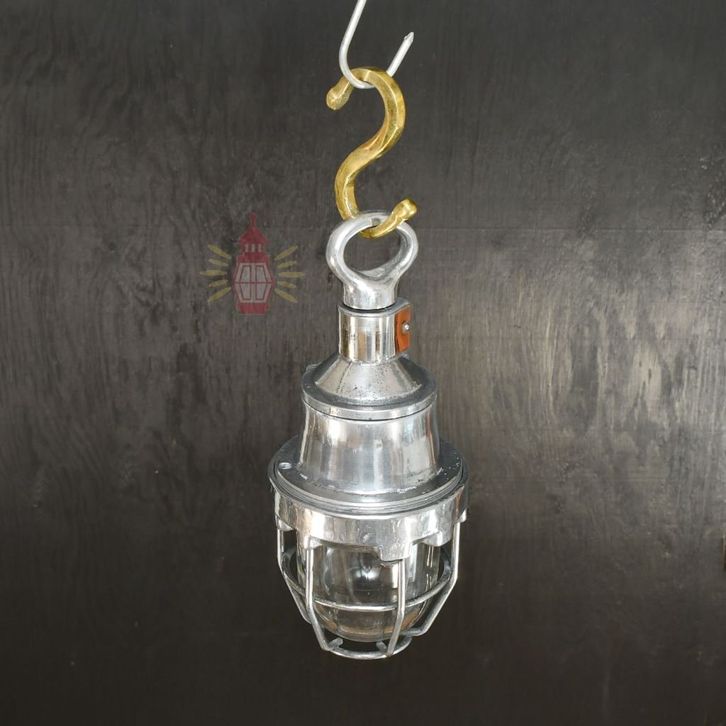 Authentic Vintage Polished Aluminium Nautical Pendant Light with Brass Hook