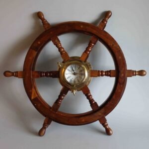 Vintage Wooden Ship Wheel Clock – Large Nautical Wall Decor