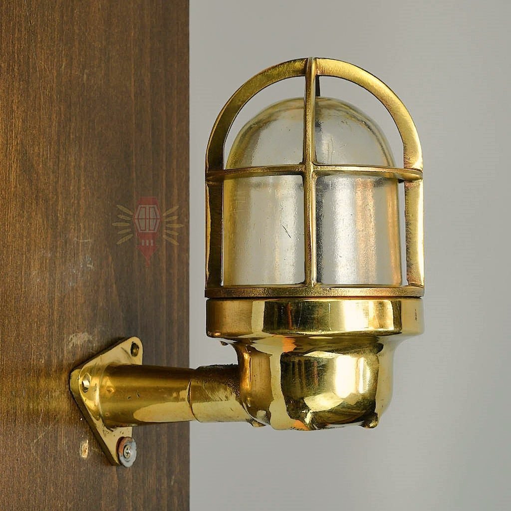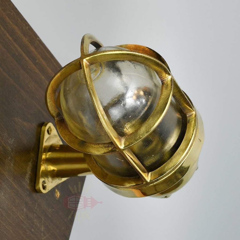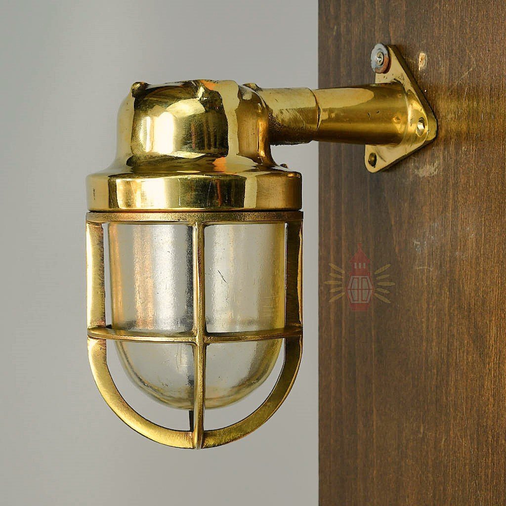 Brass 90-degree passageway light that salvaged from Cargo ships.1 Antique boat salvage Marine ship lamps with brass in very good condition. The Brass and glass are in excellent condition with no dents. (electrical). This small wall-mounted brass nautical light with a frosted globe is also referred to as a passageway light. These lights are marked “Wiska” on one side and “1131” on the other side. These letters and numbers vary a bit in size on these pieces/lights, and might be some of the lights do not have these marks/numbers but otherwise, they look the same.