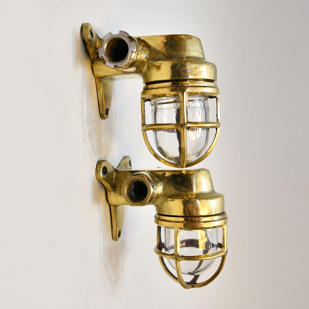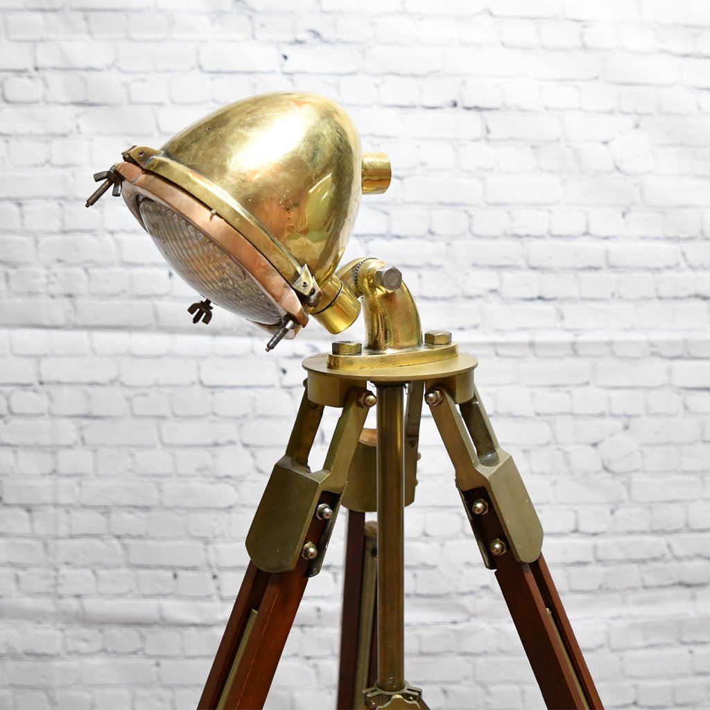 Gamla bordslampor – Äkta mässings marina spotlampa från mitten av 1900-talet för skepp inventarier och museibutik .