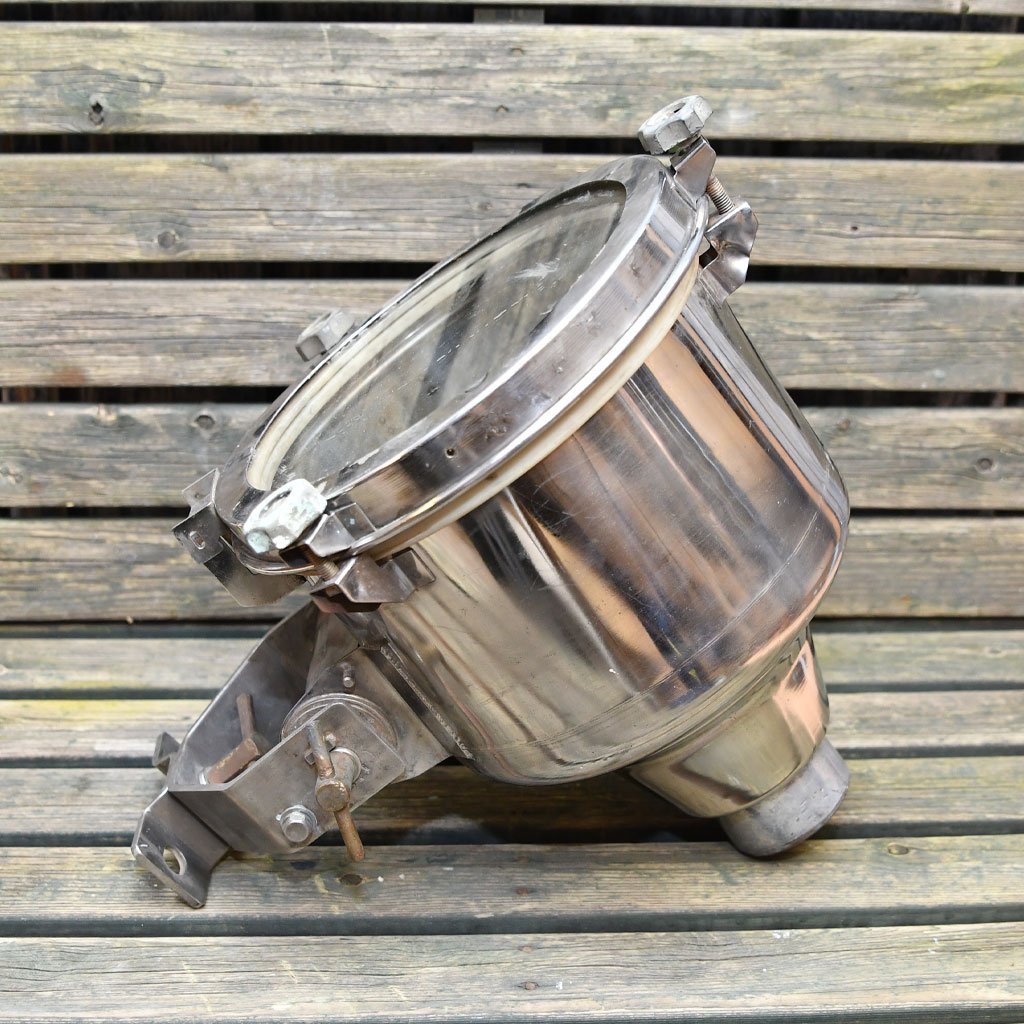 This Antique Maritime Search Spot light is made of steel. Salvaged about 20 years ago, still present in good condition. This best vintage marine security light can be used to illuminate passageways and decks. Exceptionally built to last, high-quality original Marine ships light, has spent its life onboard supertankers and cargo ships and now ready to live on Fitted with a CE certified bulb holder, takes a standard screw-in bulb. T thick glass unscrews to gain easy access to the bulb holder. This is a selection of our marine lighting that is suitable for use outdoors and in wet environments