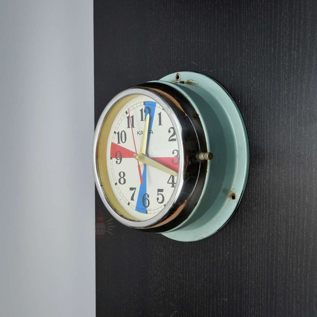We reclaimed this Kappa clock with its colourful dial from old working ships made in Korea. Kappa radio room clocks like this helped crews mark silence periods for emergency signals. Small marks or aged spots share its unique story from real maritime life.