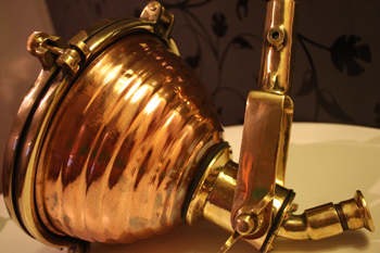 köksbelysning – En unik klassisk antika cargo hängande spotlampa i mässing och koppar.