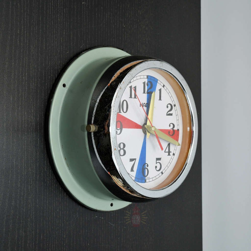 We reclaimed this original Seiko clock from old working ships. Seiko radio room clocks like this helped crews mark silence periods for emergency signals. Small marks or aged spots share its unique story from real maritime life.