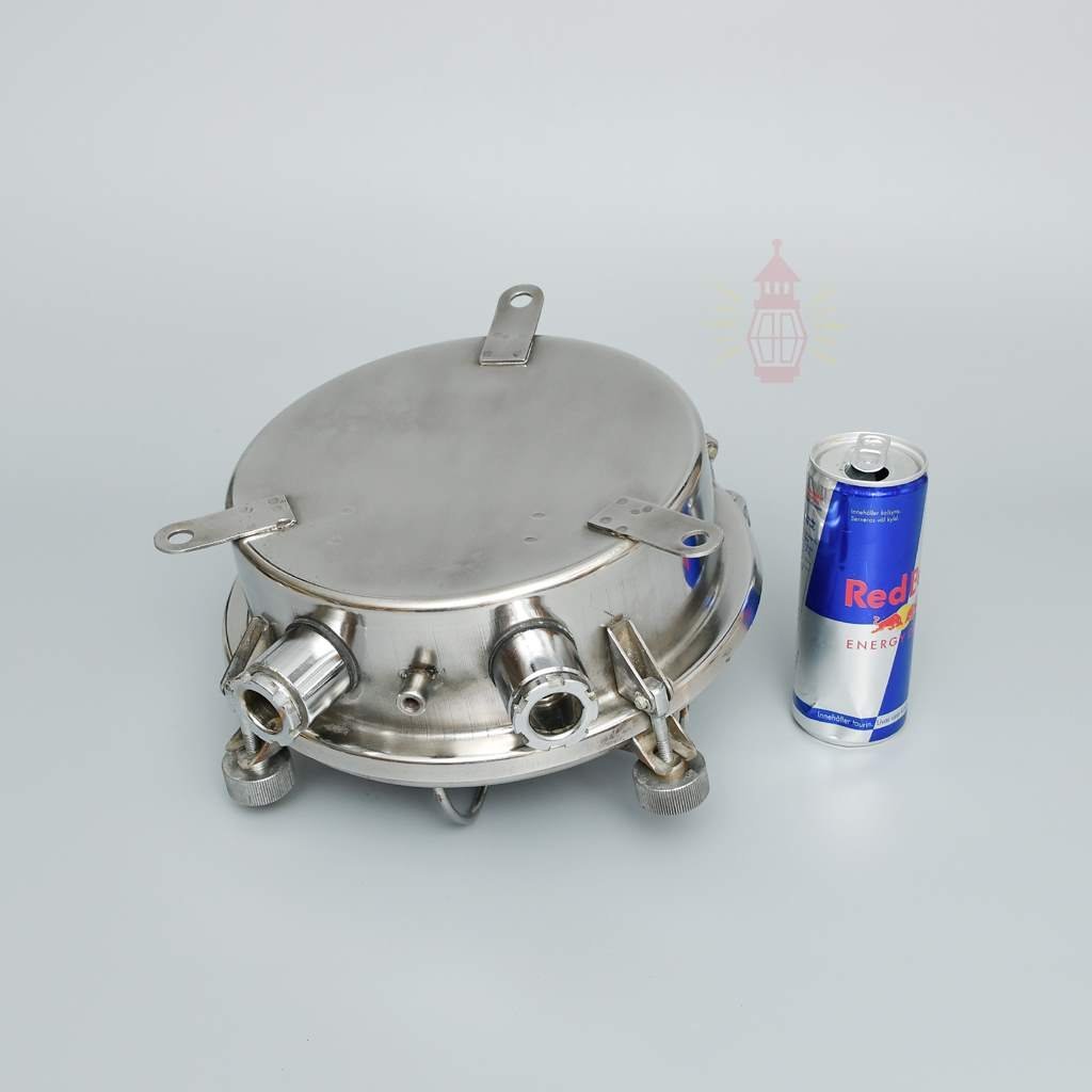 This polished stainless steel dome bulkhead was taken from old working ships. Dome bulkhead lights like this brightly lit corridors and decks through rough weather and long voyages. Little scratches and gentle wear give it real character from life at sea.