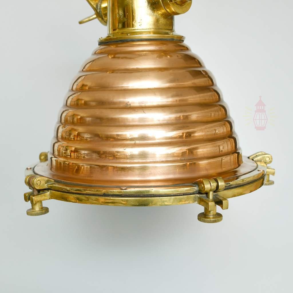 This WISKA copper and brass nautical pendant light have some great character including the deep rich glow of that stamped copper beehive housing. This light can add a true coastal living look to a dining room, over a kitchen island, or even hung over that patio table. These medium nautical copper pendant lights were designed to light up the deck of a cargo ship while it was being loaded.